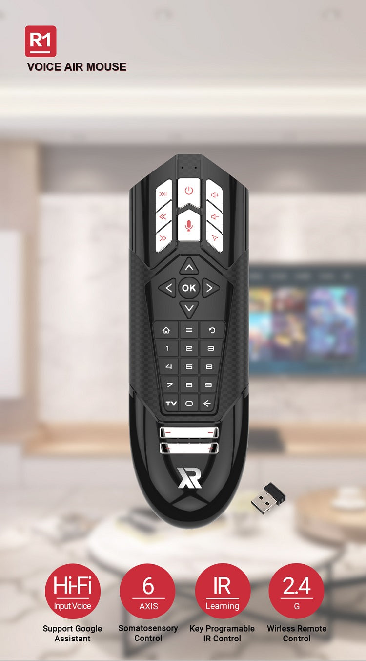 R1 VOICE AIR MOUSE BUILT IN HI-FI MIC 6 AXIS GYRO IR LEARNING SMART REMOTE CONTROL